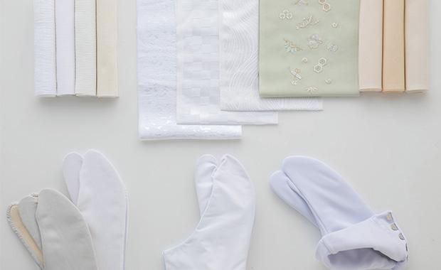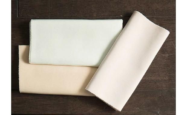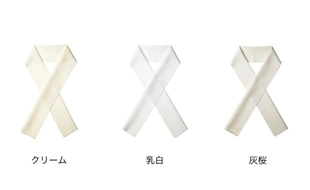 小さな面積ではあれど、顔にいちばん近いだけにメイクに匹敵する影響力を持つ半衿。そこで京都の白生地専門店「三浦清商店」に依頼して肌をきれいに見せる色を追求たのが、大人っぽい「乳白」と、ほんのり女らしい「灰桜」、はつらつとした「クリーム」の3色。いずれも肌色を問わず使える。