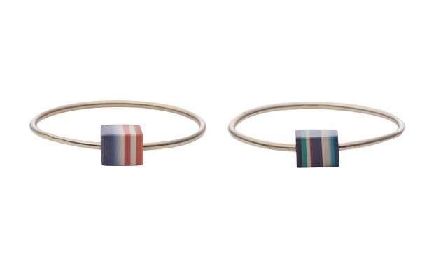 色漆を重ねた小さなキューブリングは繊細なk10の地金なので、重ねづけしたりピンキーにしたりして楽しめる。角はきれいに削ってあるので、着物を傷つけない軽くてなめらかな着け心地。どれも落ち着いた色合いで品がよく、肌にしっとりなじんでくれる。漆は使うほどに艶が増していく丈夫な素材なので、ぜひ長く愛用したい。