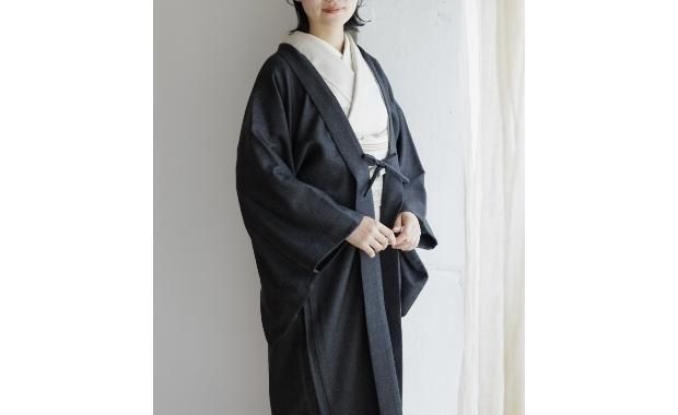 スタイリングの幅を広げてくれるベーシックカラーの無地羽織。紬に合わせればハンサムに、繊細な色柄の小紋に合わせれば上品に。軽くしなやかな洋服用のウール素材を使いながらカジュアルな印象になりすぎないのは、羽織のセオリーをきちんと守って仕立てられているから。振りの開きや、するりと脱ぎ着がしやすい裏地、適度な重みをプラスして美しい落ち感を演出する袖口や裾の返しなど正統感が漂う。秋口からさらりと着られる厚さでマフラーやショールと組み合わせれば防寒性もアップ。シワになりにくくクリーニングもOKなので、1枚あると春先まで大活躍する。 【注】七緒vol.67にて、本商品のサイズ表記に誤りがございました。深くお詫び申し上げますとともに、下記の通り訂正させていただきます。 誤:フリーサイズ(約着丈93×裄丈70×袖丈48cm) 正:フリーサイズ(約着丈102×裄丈69×袖丈48cm)