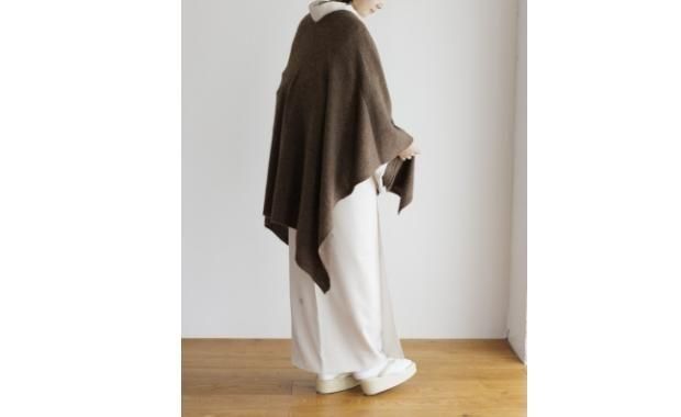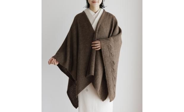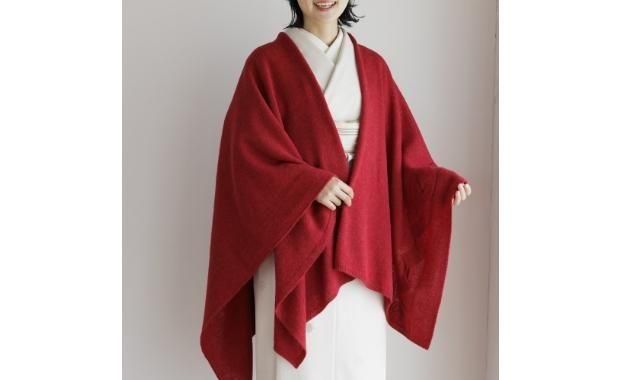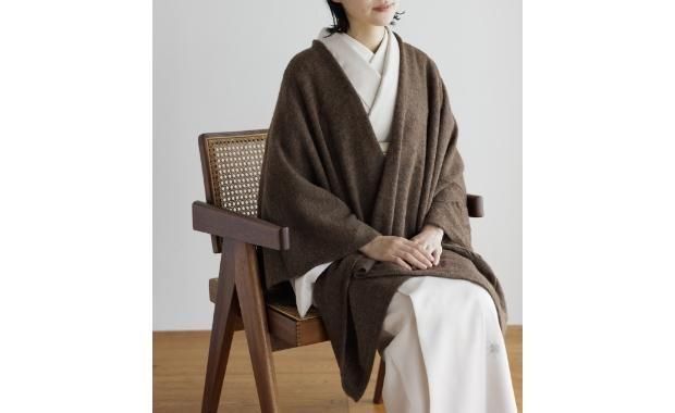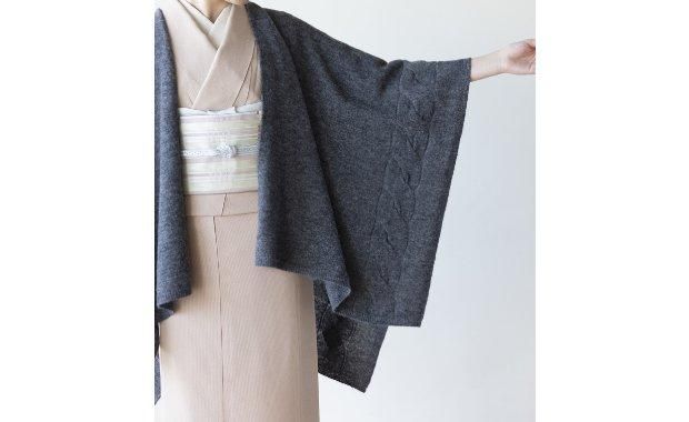 羽織るとまるで上着のように見えるデザインと、長めの丈がエレガントなシルエットを演出。いずれも合わせやすいカラーで、着物の袖丈に関係なく羽織れるので、ふだん着から礼装時の防寒対策まで幅広くカバー。羽織やコートの上から重ねても温かく、洋服用としてもおしゃれだ。生後2年以内のベビーアルパカの初刈りの毛を使用しているから、うっとりするほどふんわりとやわらかで、保温性も抜群。脱いだら四角く畳んでコンパクトに持ち歩けるのも魅力だ。くるくる丸めて携帯もできるニット紐付き。
